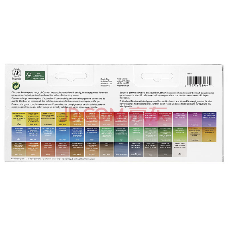 商品相册:温莎牛顿【弗洛伊德同品牌】歌文水彩颜料固体水彩户外写生水彩绘画颜料45色半块画室套第1张/共8