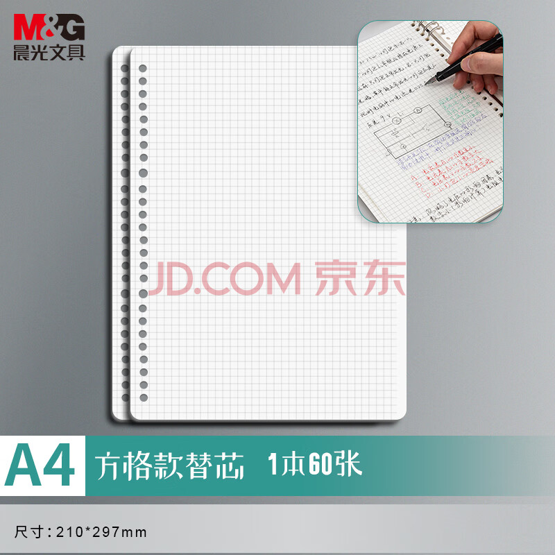 商品相册:晨光(M&G)文具A4/60张活页本替芯 30孔可拆卸笔记本本子活页纸作业本80g方格内芯单本开学必备APY9N20PB第