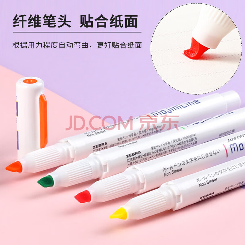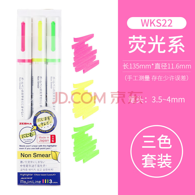 商品相册:斑马牌(ZEBRA)淡色单头荧光笔 MojiniLine系列不易晕染手帐笔 学生标记笔记号笔 WKS22 3色装第