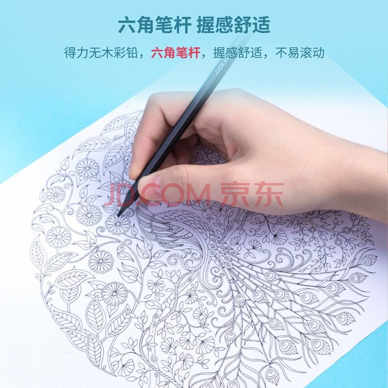 商品相册:得力(deli)48色可擦彩铅环保无木儿童画画彩色铅笔绘画画本填色画笔带橡皮头生日彩笔第