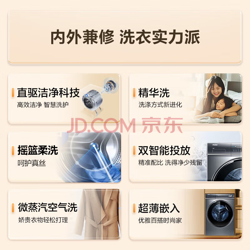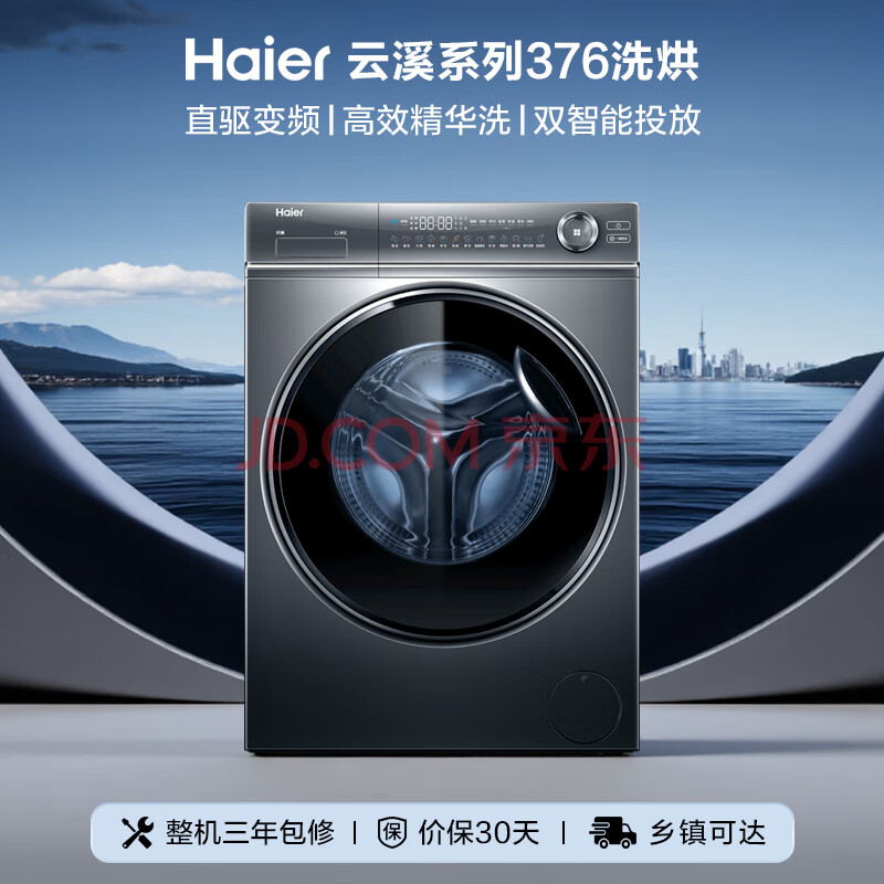 商品相册:海尔云溪2.0 全自动滚筒洗烘一体 洗衣机带烘干一体 10KG 变频 家电自营 XQG100-HBD14376LU1第