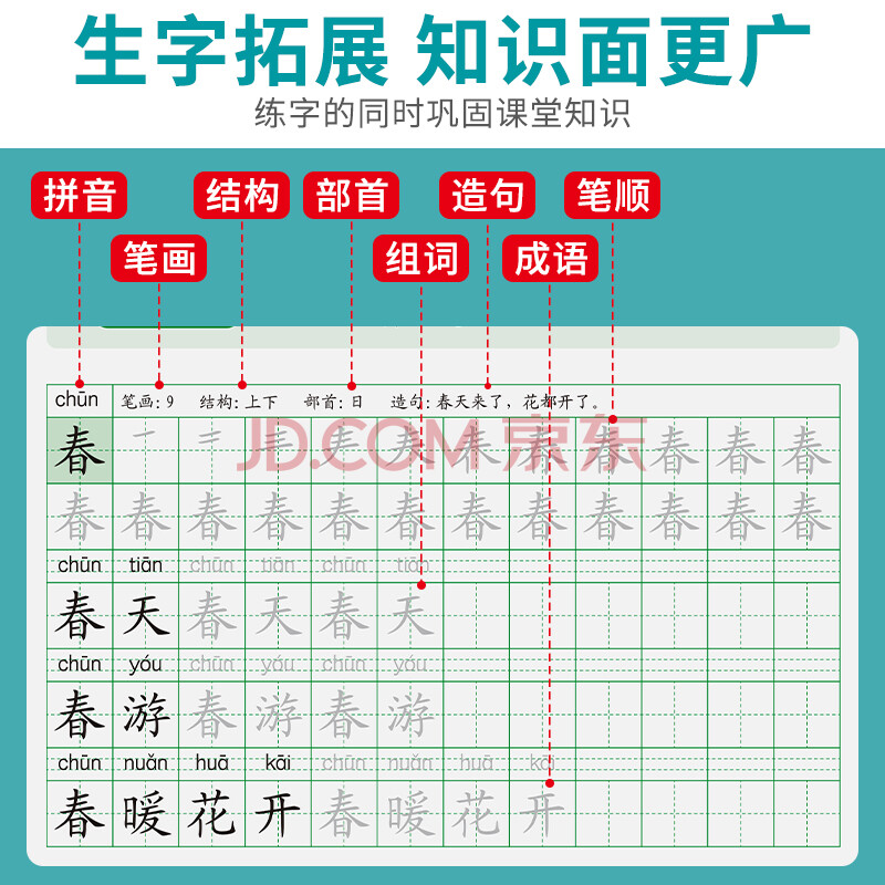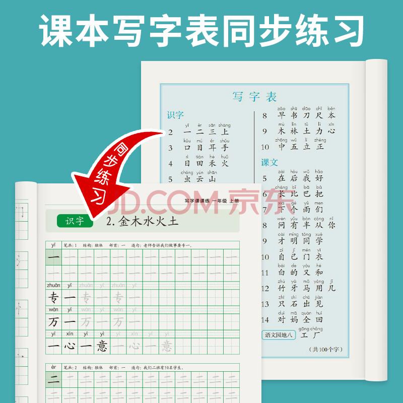 商品相册:绍泽文化 语文同步练字帖小学生写字课课练字帖1-6年级语文人教版同步生字拼音田字格生字描红本 一年级下册第