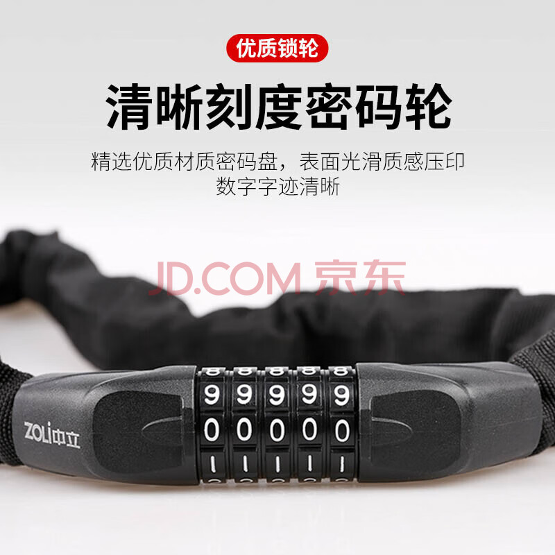 商品相册:中立(ZOLI)85605 山地自行车死飞电动摩托车电瓶车锁 通用链条环形防盗锁加长布套锁 玻璃门密码锁第