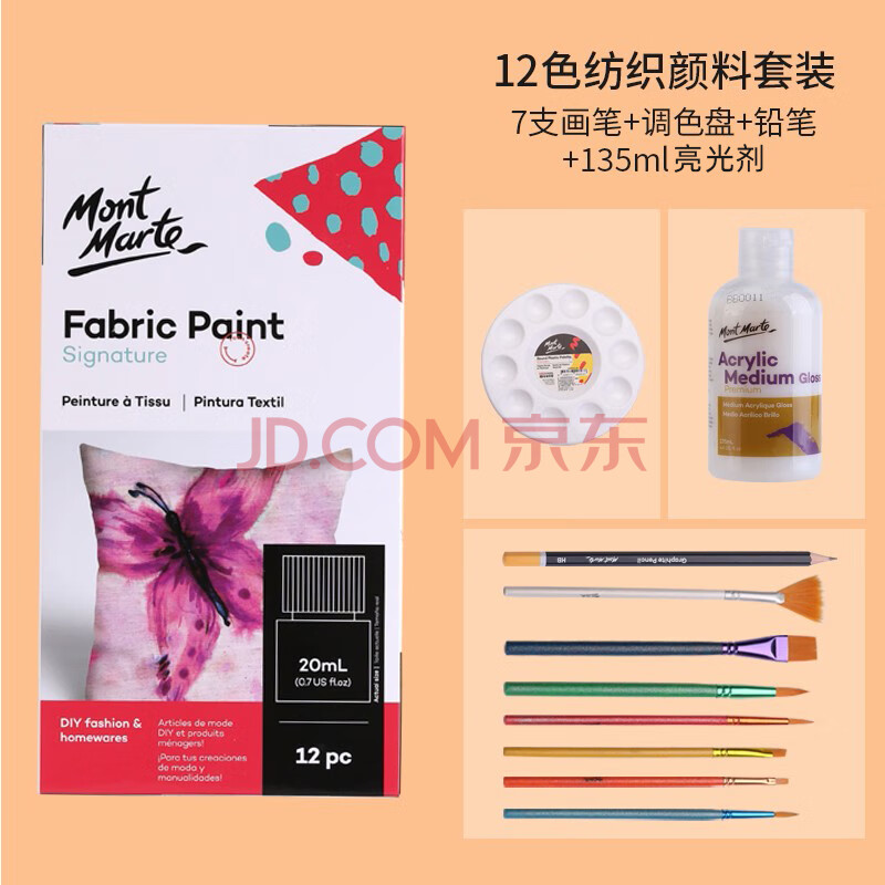 商品相册:蒙玛特(MontMarte)丙烯颜料12色20ml纺织颜料美术纺织品纤维颜料画笔铅笔调色盘调和液V美育工具第