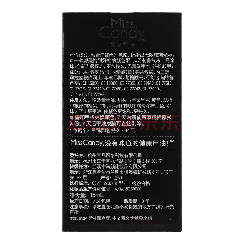商品相册:Miss Candy显白15ml指甲油免烤快干持久可撕拉半透红色美甲 红豆亮片MJ44第1张/共7