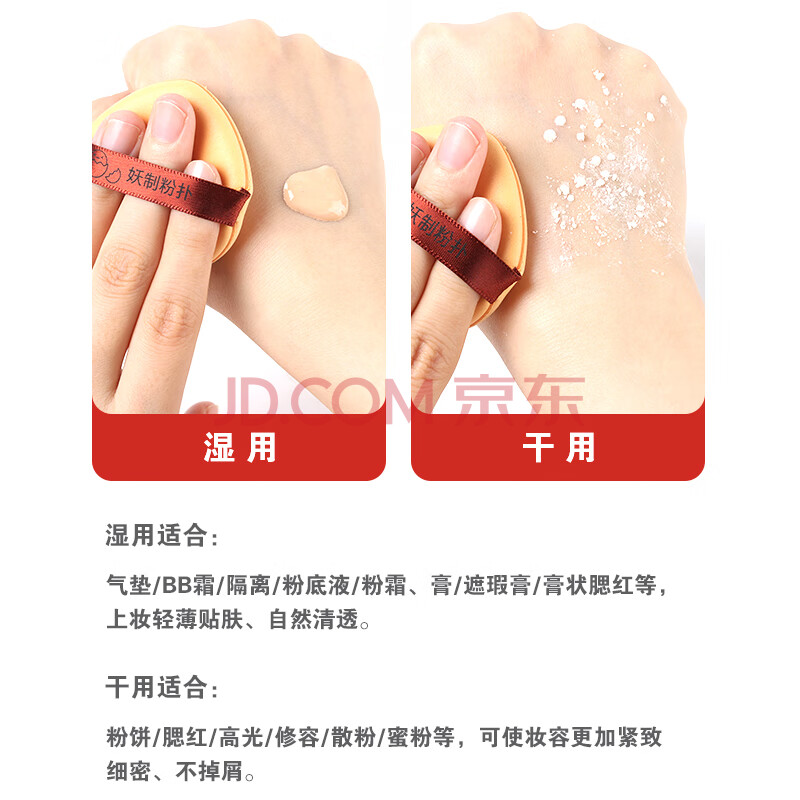 商品相册:妖制粉扑气垫粉底液专用官方三角粉饼扑不易吃粉定妆海绵 皮面3枚装第