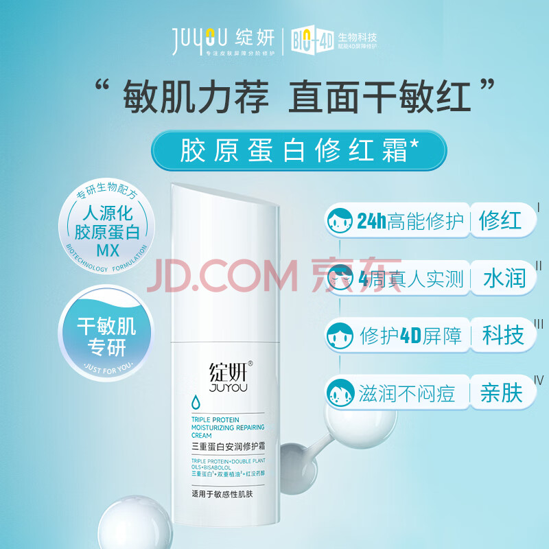 商品相册:绽妍三重蛋白修红霜50g乳液保湿脸霜面霜红血丝修护肤品送女友礼物第