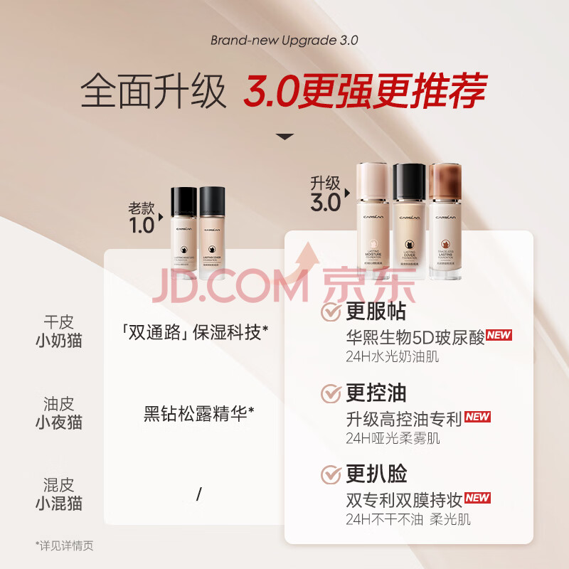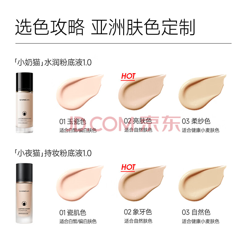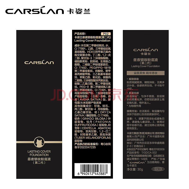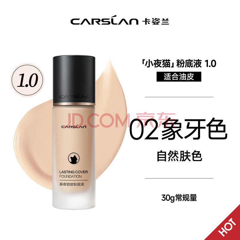商品相册:卡姿兰(Carslan)小夜猫粉底液遮瑕持久保湿控油不脱妆油皮02#象牙色30g生日礼物女第