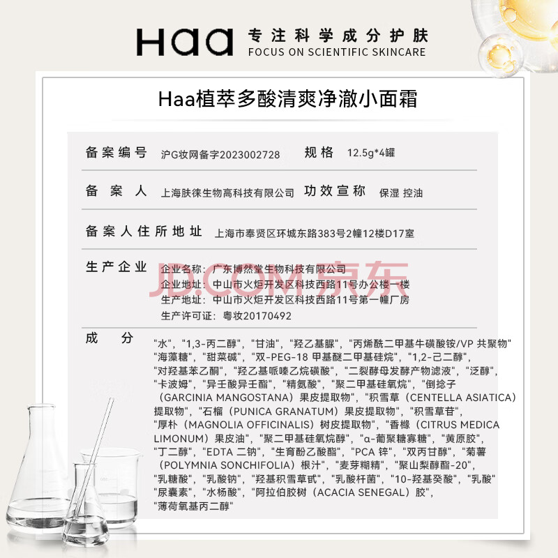 商品相册:Haa植萃净澈高保湿小面霜50g 补水修护滋润护肤品男女士 50g第