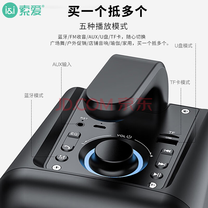 商品相册:索爱(soaiy)SH36 无线蓝牙音箱 大音量超重低音炮 广场舞户外音响 车载迷你小型便携收款扩音器升级版 黑第