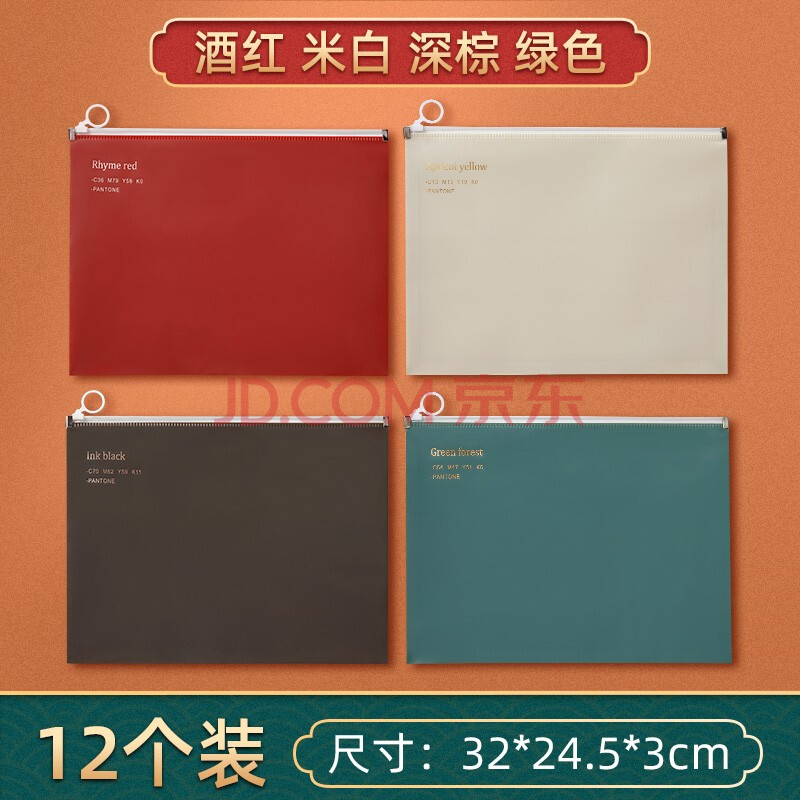 商品相册:文谷(Wengu)韶华复古彩色12只装A4拉链袋档案袋办公资料袋试卷票据收纳袋办公用品LBD-087-12第