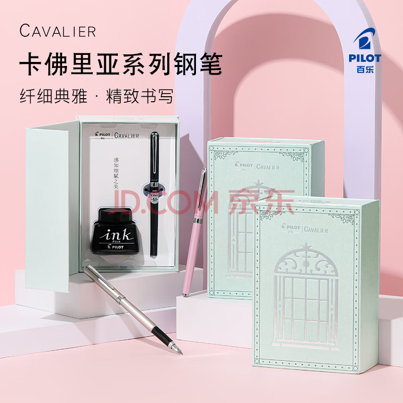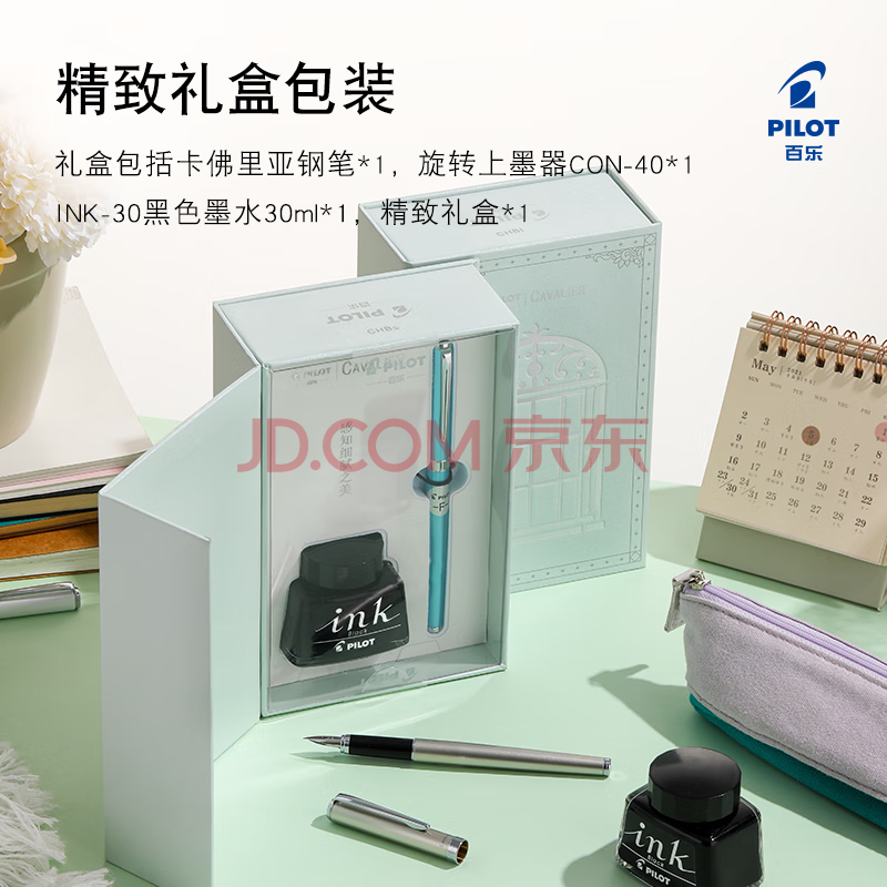 商品相册:百乐(PILOT)Cavalier卡佛里亚钢笔墨水套装礼盒成人学生书写练字 FCAN3SRLBM M尖浅蓝第