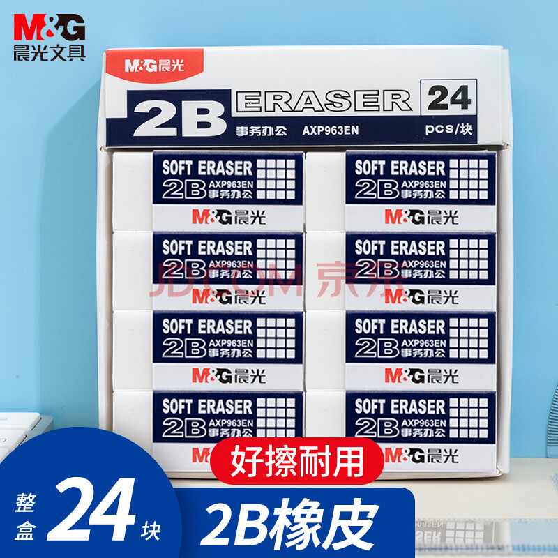 商品相册:晨光(M&G)文具24块净白2B橡皮擦学生考试美术绘图橡皮易擦少屑简约办公中高考铅笔用第