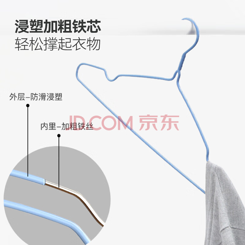 商品相册:富居衣架20只无痕防滑裤钩一体晾衣架晒衣服挂架大衣撑子 蓝第