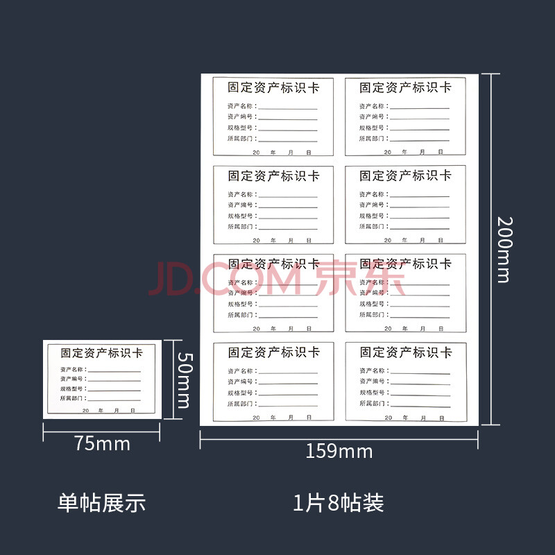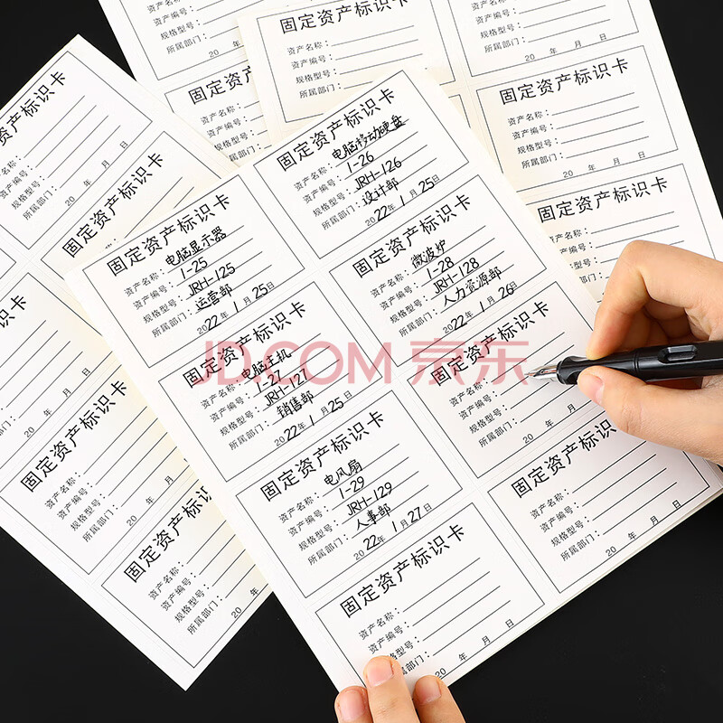 商品相册:嘉然恒固定资产标签贴纸 固定资产标识卡 手写不干胶标签贴纸自粘型贴纸办公用品可定制 20张160贴第
