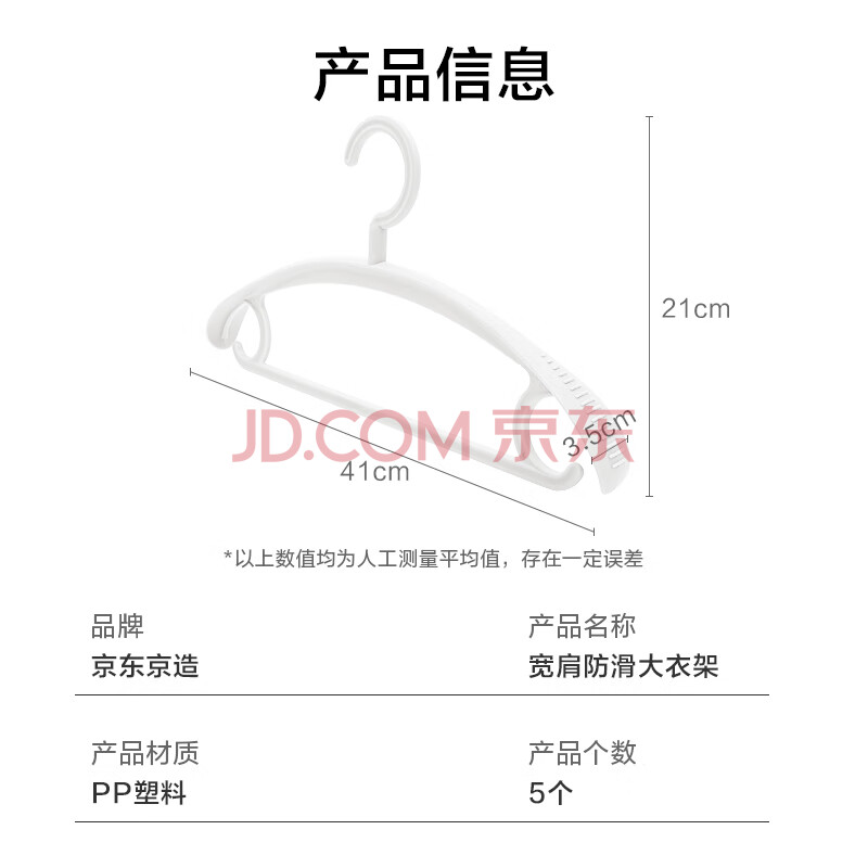 商品相册:京东京造 衣架无痕防滑衣服架宽肩西服大衣晾衣架子加厚衣服挂衣撑5个白第