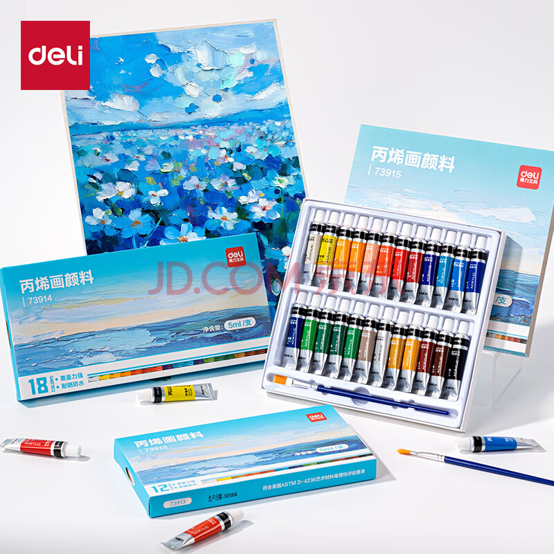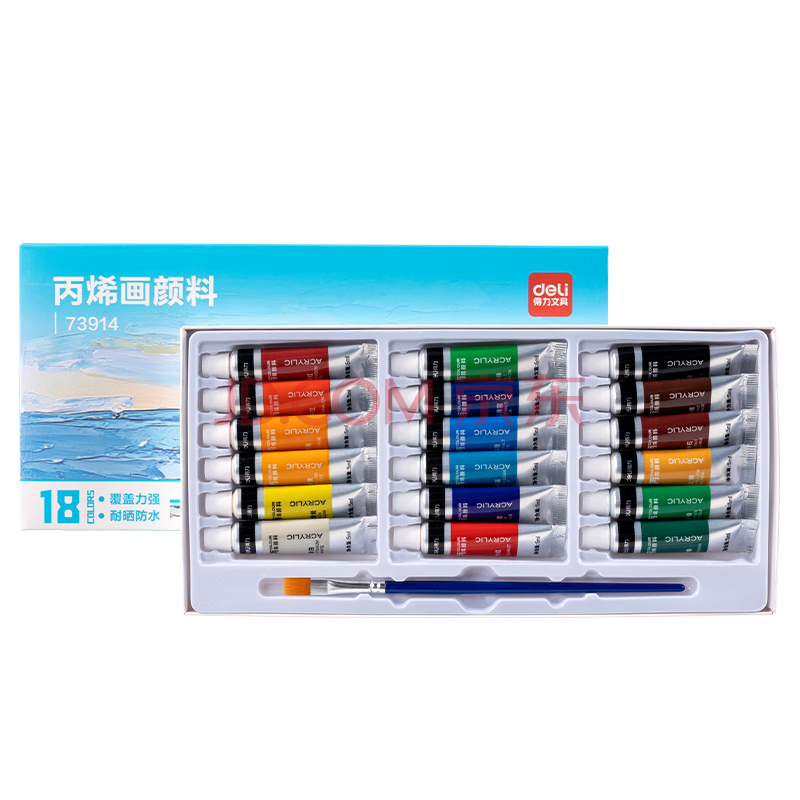 商品相册:得力(deli)丙烯颜料18色5ml初学入门套装画画丙烯画改鞋写生黑板报墙绘手绘儿童成人73914美育工具第