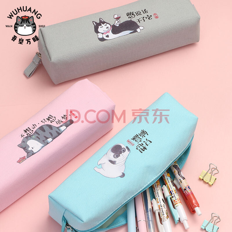商品相册:齐心(Comix)吾皇万睡 学生笔袋 大容量简约小方包 多功能学生铅笔盒 文具收纳盒单个装WHA3205第1张/共4