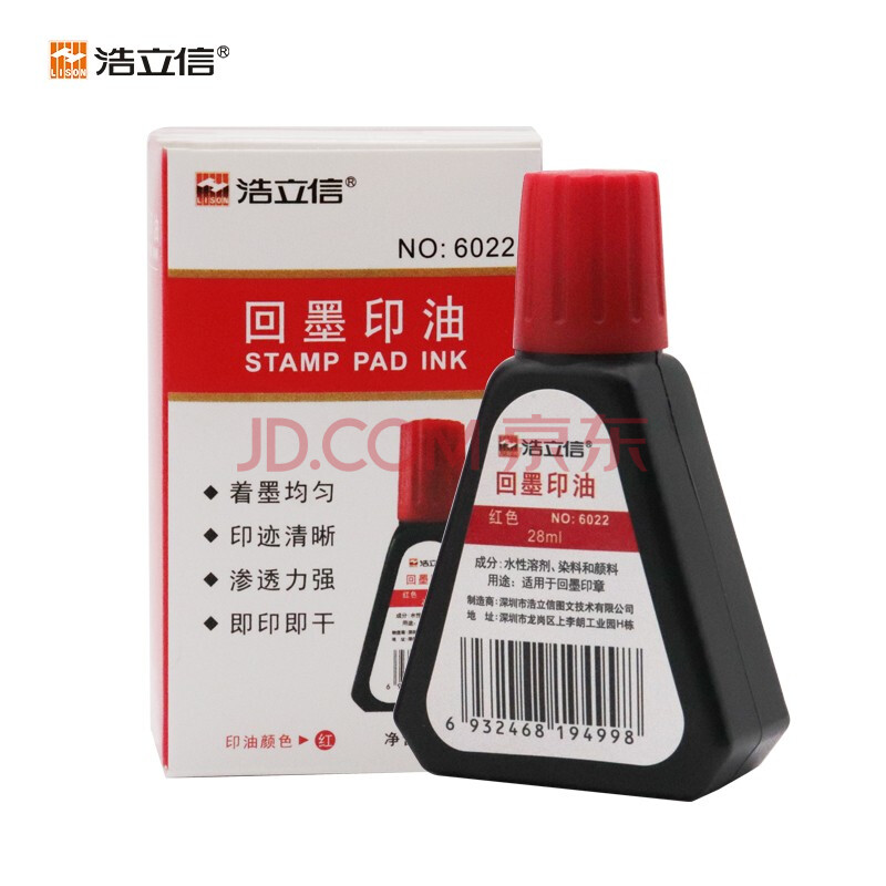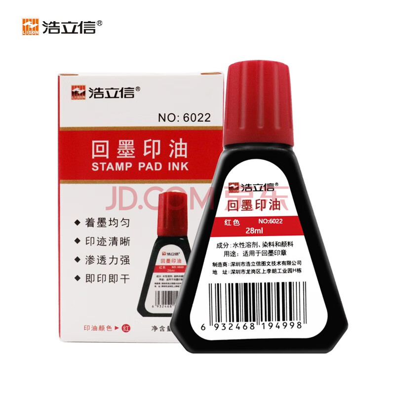 商品相册:浩立信(LISON) 回墨印油 红色 28ml 回墨印章油 财务印章印油发票章专用章专用印油 墨水性印油第