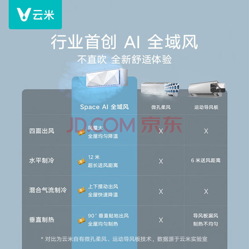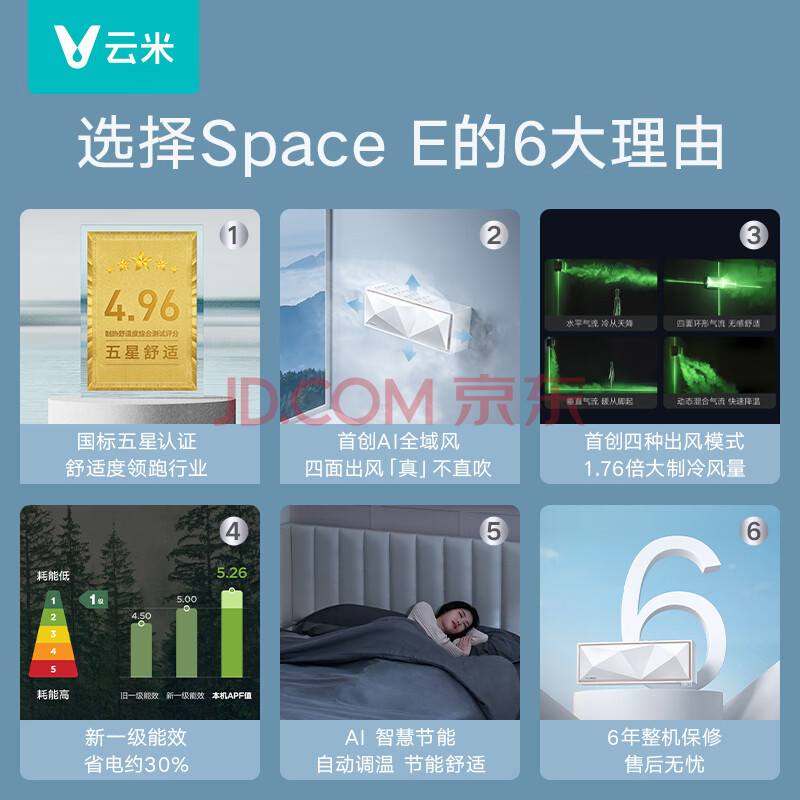 商品相册:云米(VIOMI)空调智省电1.5匹新一级能效变频冷暖挂机家用 Space E AI全域风KFRd-35GW/Y2QX2-A1已接入米家APP第