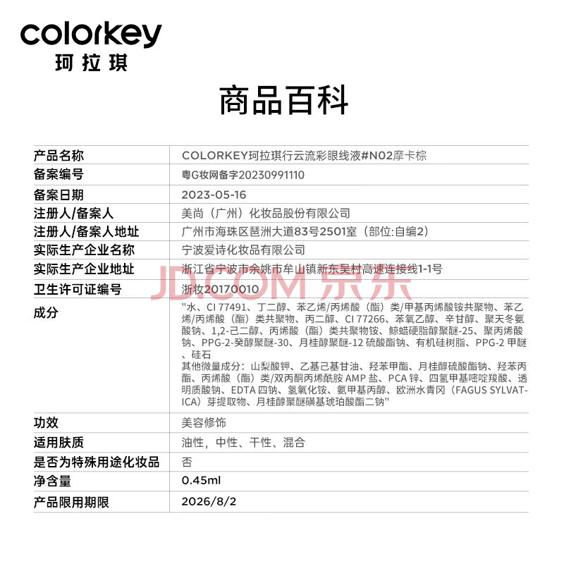 商品相册:Color Key珂拉琪行云流彩眼线液笔防水不易晕染送女友老婆生日礼物摩卡棕第