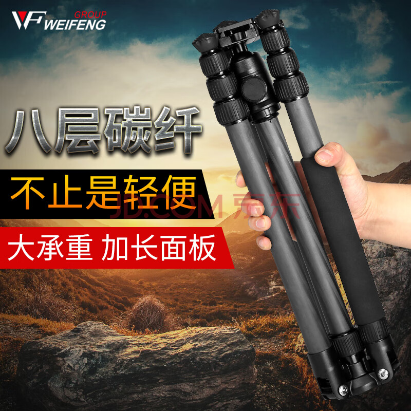 商品相册:伟峰 WF-C6620A 八层碳纤维三脚架 微单反相机摄影摄像脚架 旅游便携三角架 自拍直播户外落地支架第