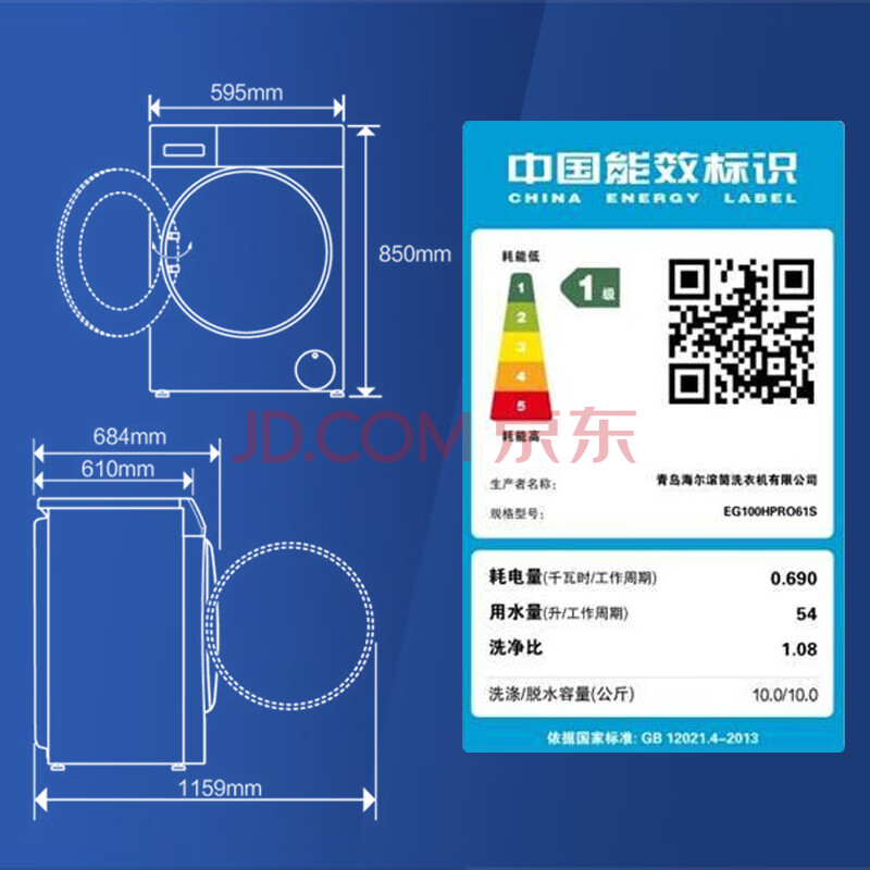 商品相册:海尔(Haier)10KG滚筒洗烘一体洗衣机 变频全自动 星蕴银 香薰洗 EG100HPRO61S【专】第