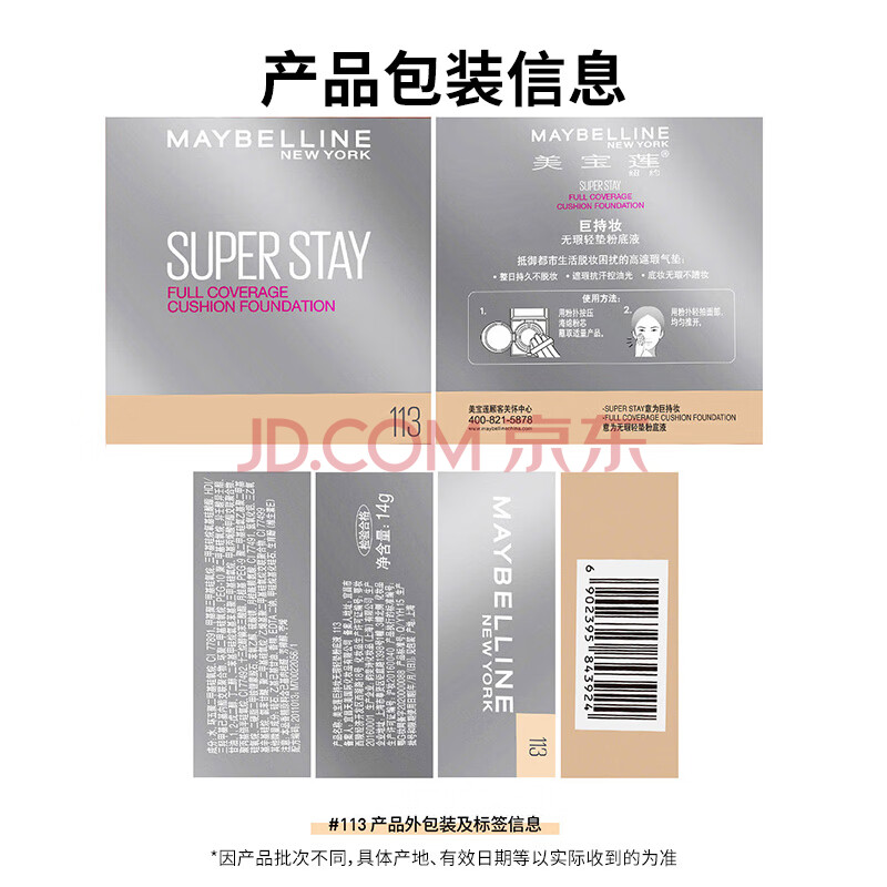 商品相册:美宝莲superstay巨持妆气垫BB 持久遮瑕控油 113自然肤色 生日礼物女第