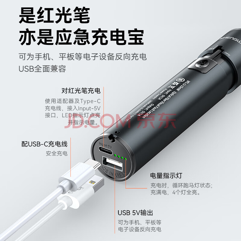 商品相册:胜为充电式红光测试笔 光纤断点故障检测仪 通光/打光笔 红光笔红光源 SC/FC/ST接头冷接子通用 GFB215第