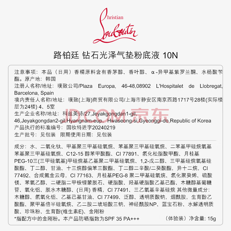 商品相册:路铂廷(Christian Louboutin)CL钻石光泽红气垫10N 萝卜丁遮瑕防晒粉底液 生日礼物送女友老婆第