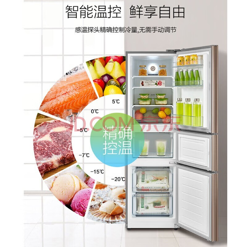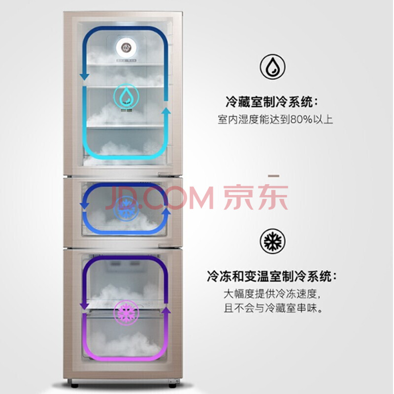 商品相册:美的(Midea)217升大容量冰箱 家用三门 风冷无霜 双系统制冷 BCD-217WTM 爵士棕第