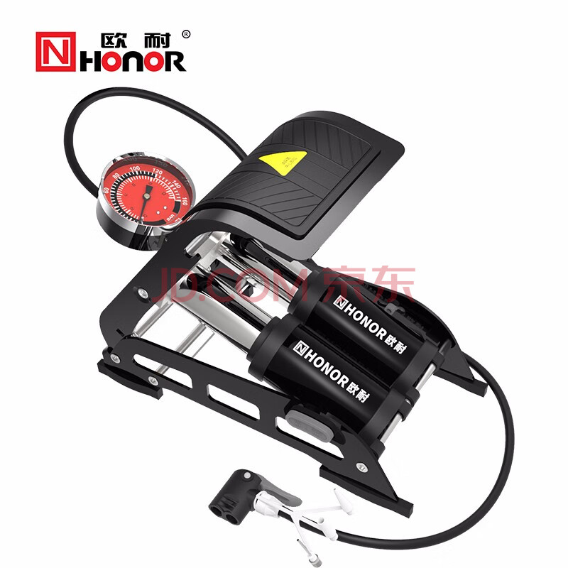 商品相册:欧耐 脚踩打气筒自行车电动电瓶车家用汽车脚踏充气泵高压表第