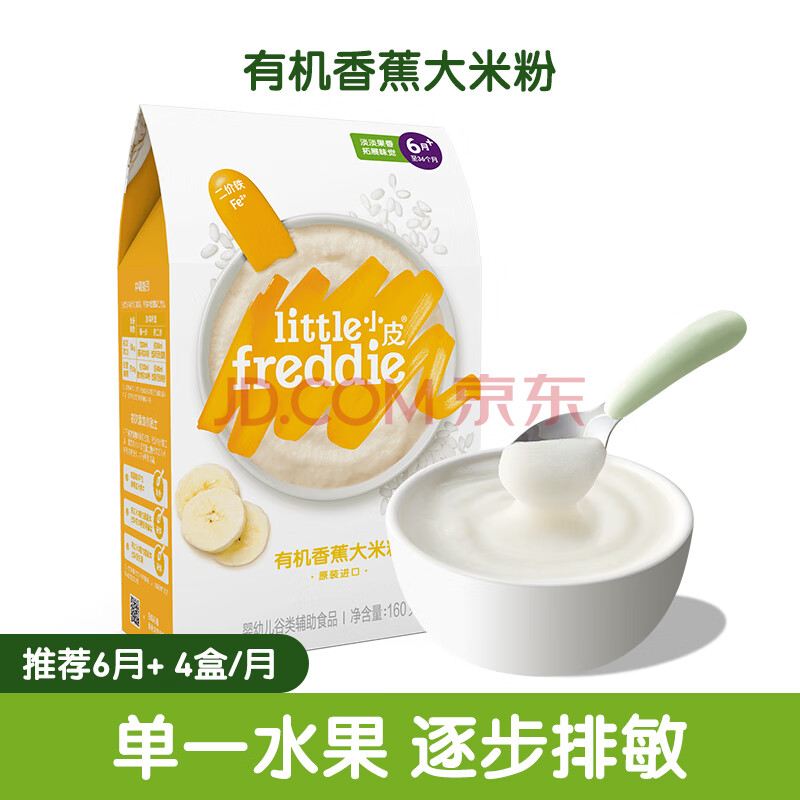 商品相册:小皮(Little Freddie)有机高铁香蕉大米粉160g*1盒 欧洲原装进口婴儿辅食强化铁米糊第