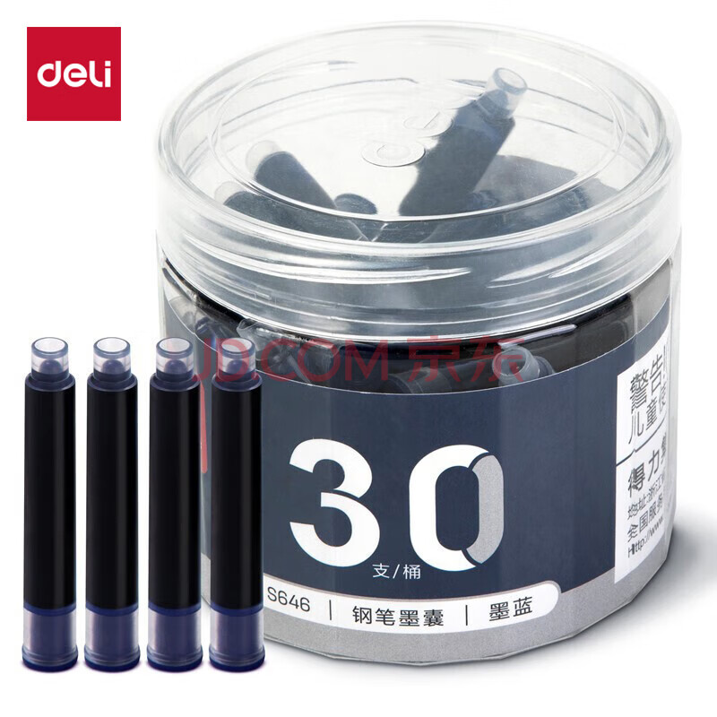 商品相册:得力(deli)钢笔墨囊 学生钢笔墨水笔墨囊 可替换 30支/盒中包装DL-S646墨蓝第