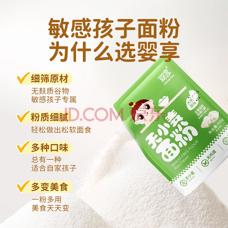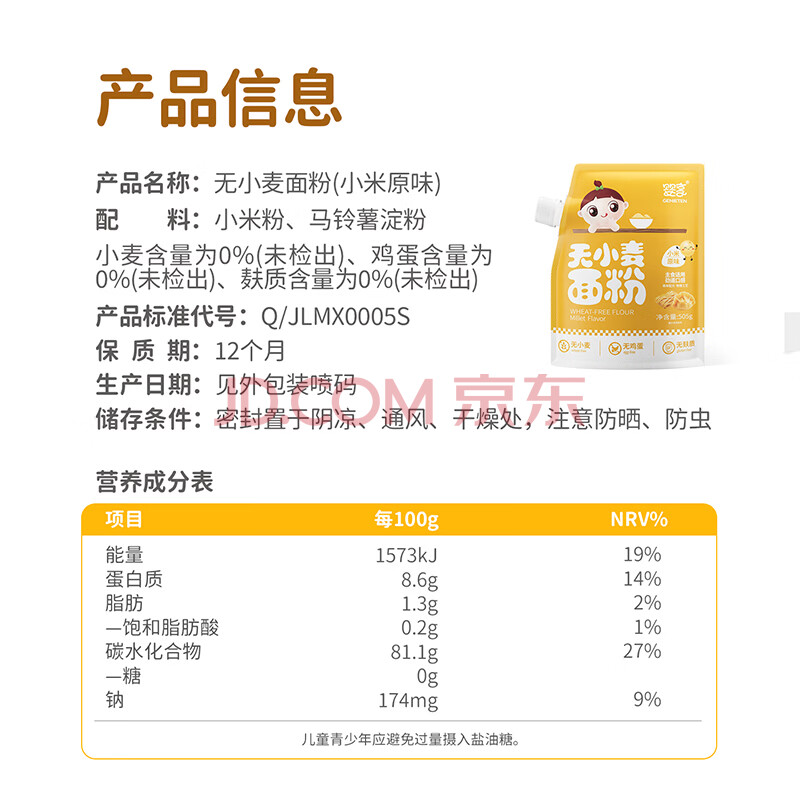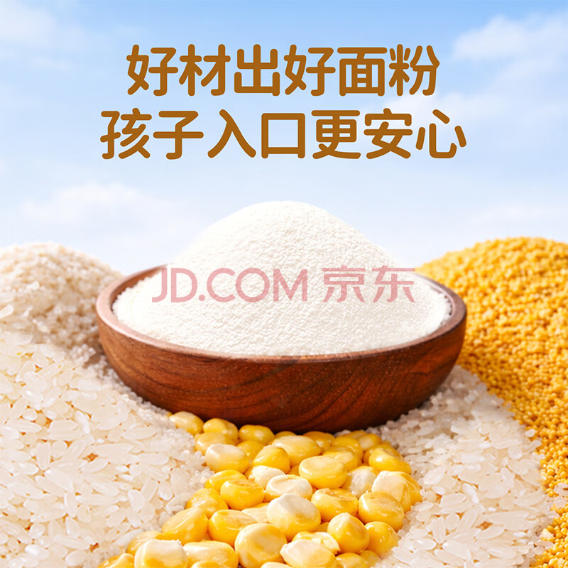 商品相册:婴享儿童主食面粉饺子粉无小麦无麸质含婴儿宝宝辅食谱小米原味505g第