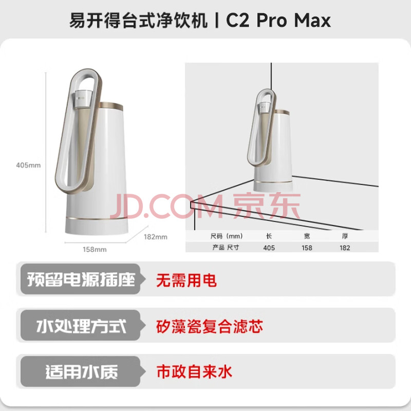 商品相册:易开得净水器家用净水机 厨房台式自来水直饮不插电0废水净化水龙头一体机便携安装C2 Pro Max第