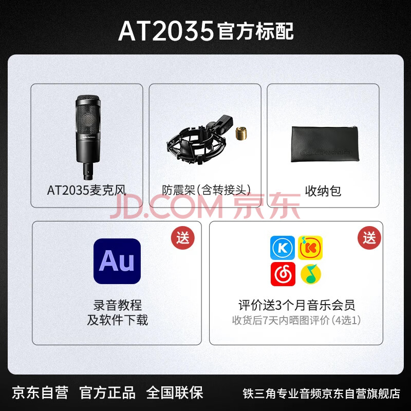 商品相册:铁三角AT2035BK 指向性电容麦克风直播K歌配音专业级收音话筒第