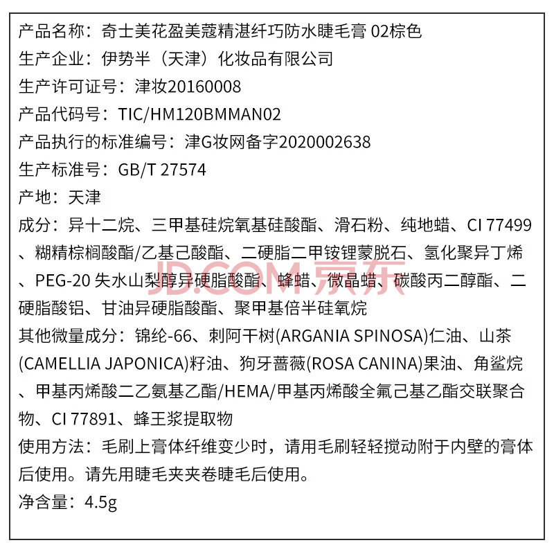 商品相册:奇士美(kiss me)花盈美蔻精湛纤巧防水睫毛膏4.5g 02棕色 纤细刷头 不易晕染第