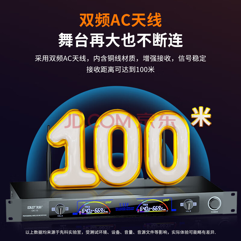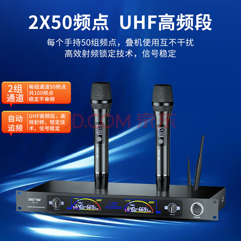 商品相册:先科(SAST)OK-15 无线话筒 一拖二 U段无线麦克风专业K歌麦克风会议主持专业家庭KTV话筒第