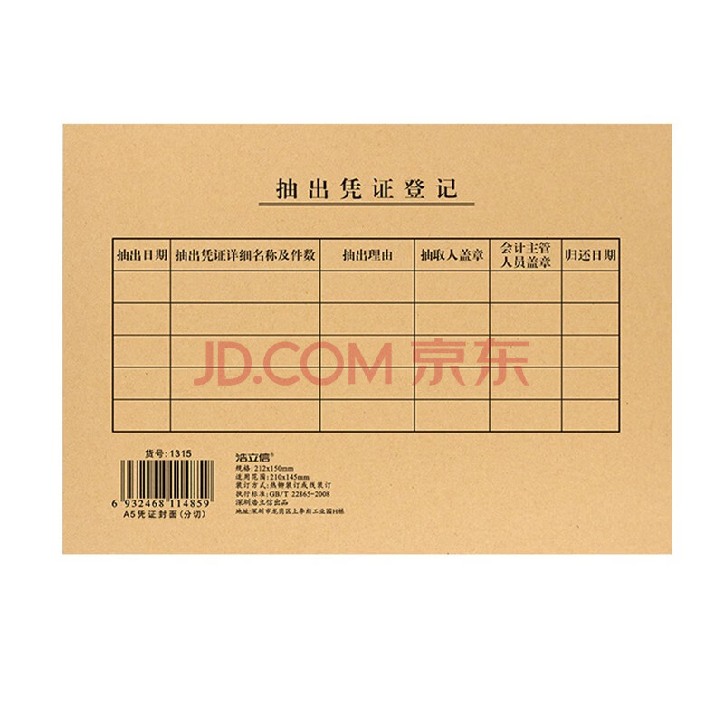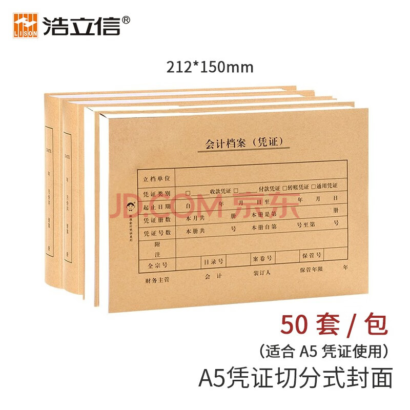 商品相册:浩立信(LISON)1315-会计档案(凭证)封面切分式 212*150mm 100张/包 50套/包 精牛A5凭证装订全国通用第
