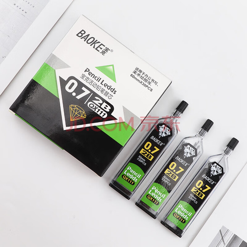 商品相册:宝克(BAOKE)QX111 活动铅芯0.7mm2B 自动铅笔替芯 30支/瓶 共12瓶/盒第