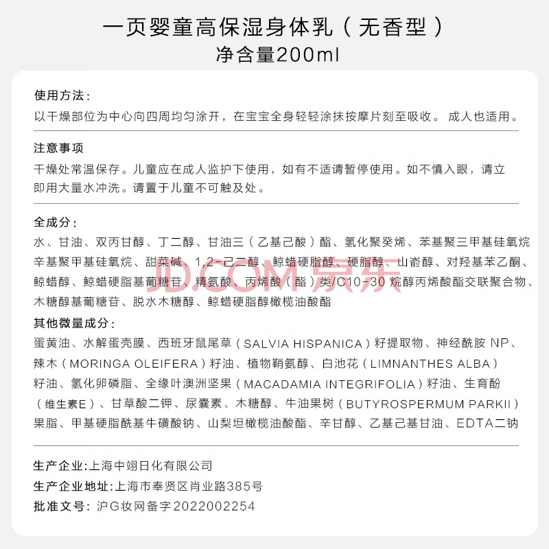 商品相册:一页儿童身体乳婴儿润肤乳新生儿宝宝润肤霜滋润舒缓保湿乳200ml第