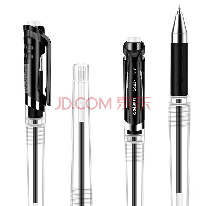 商品相册:得力(deli)中性笔S20黑色0.7mm商务办公中性笔签字笔学生用刷题笔书写顺滑拔帽款12支装第