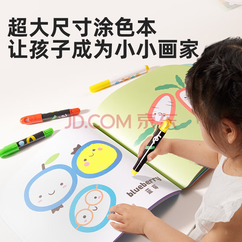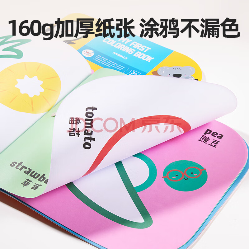 商品相册:美乐童年儿童涂色本超大尺寸绘画本低幼宝宝涂鸦填色本简笔画启蒙美食认知160g加厚纸张第1张/共5