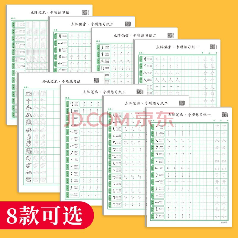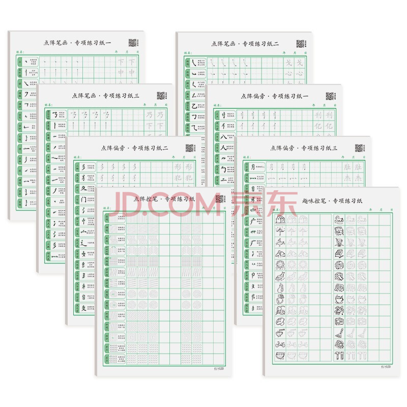 商品相册:绍泽文化 基础笔画专项练习纸小学生控笔训练字帖儿童硬笔书法偏旁部首笔顺入门基础教程字帖 点阵训练套装 第
