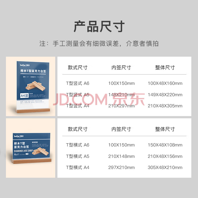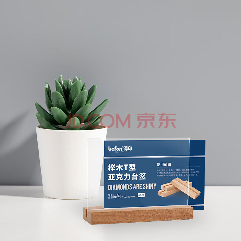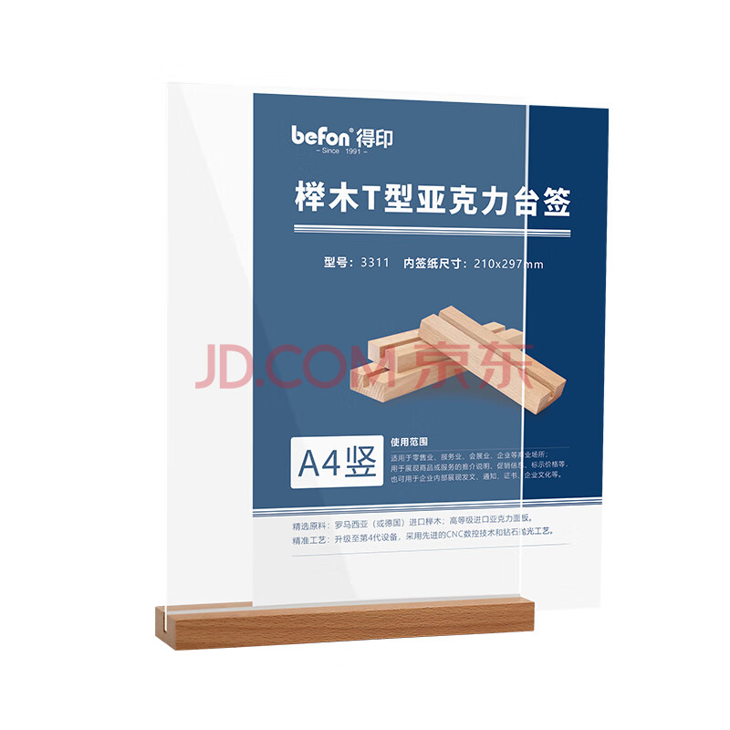 商品相册:得印精致榉木T型亚克力桌牌/桌牌架/台签4226高透明台卡会议桌牌席位卡座位牌展示牌A6横1/个第