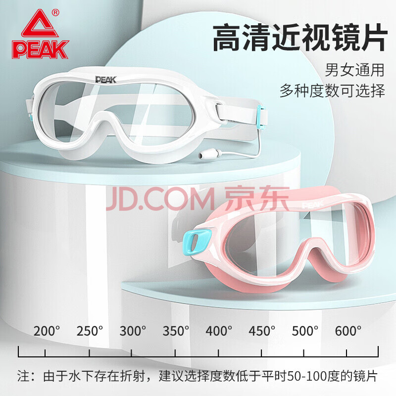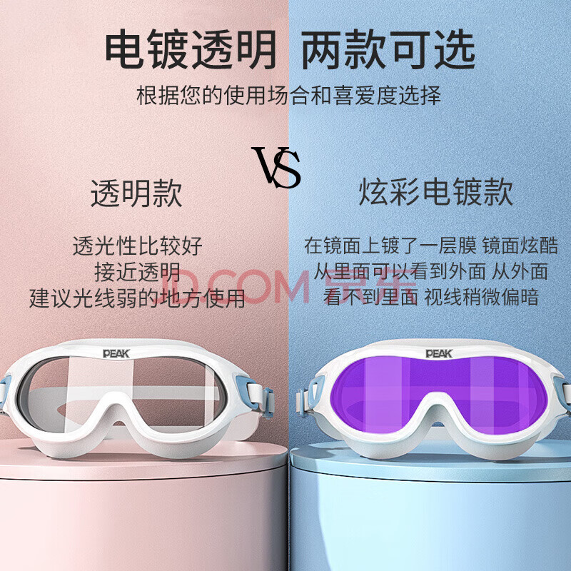 商品相册:匹克PEAK成人游泳镜男女高清防雾防水大框一体专业潜水连体耳塞游泳眼镜YS22153粉色第