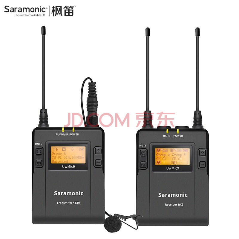 商品相册:枫笛(Saramonic) UwMic9 广播级无线麦克风小蜜蜂一拖一 相机手机直播拍摄短视频采访收录音降噪话筒专业设备第