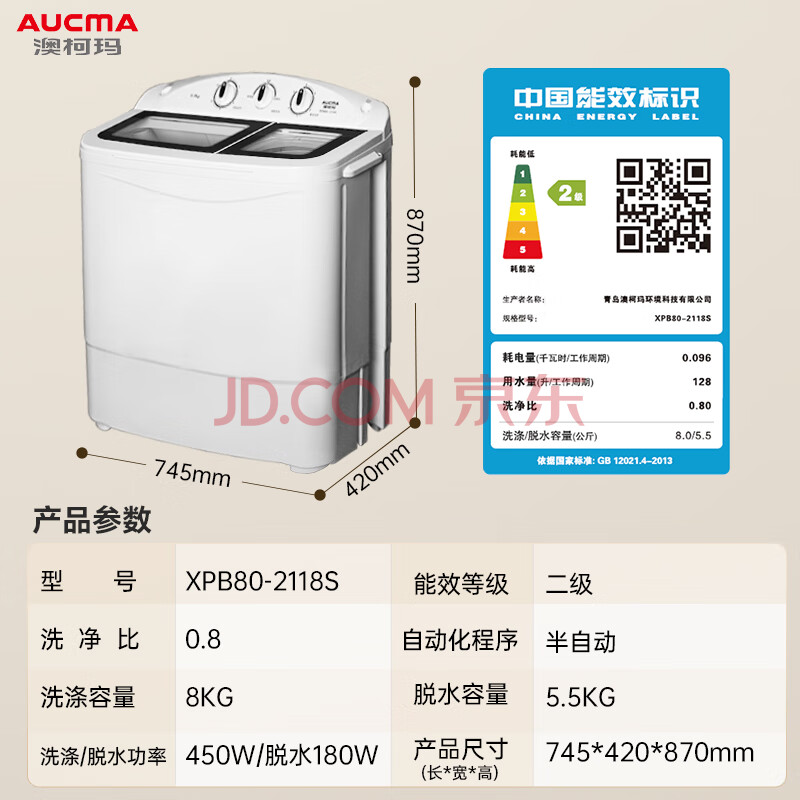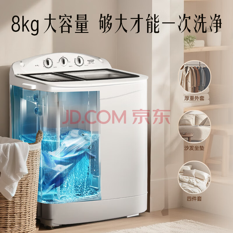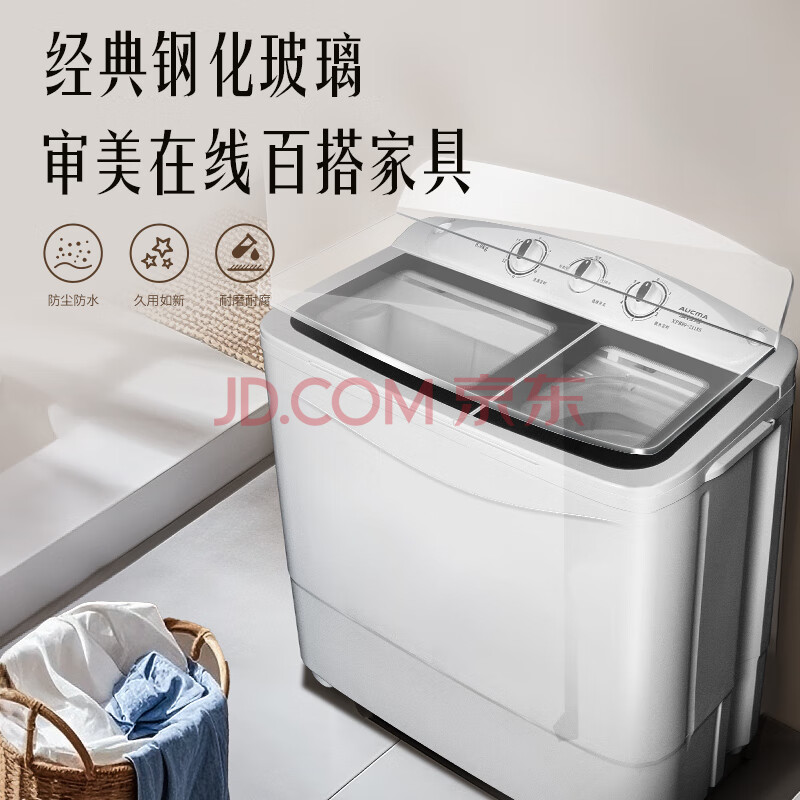 商品相册:澳柯玛(AUCMA)洗衣机半自动波轮洗衣机8公斤大容量 玻璃面板双缸双桶洗脱分离脱水除毛甩干租房家用XPB80-2118S第