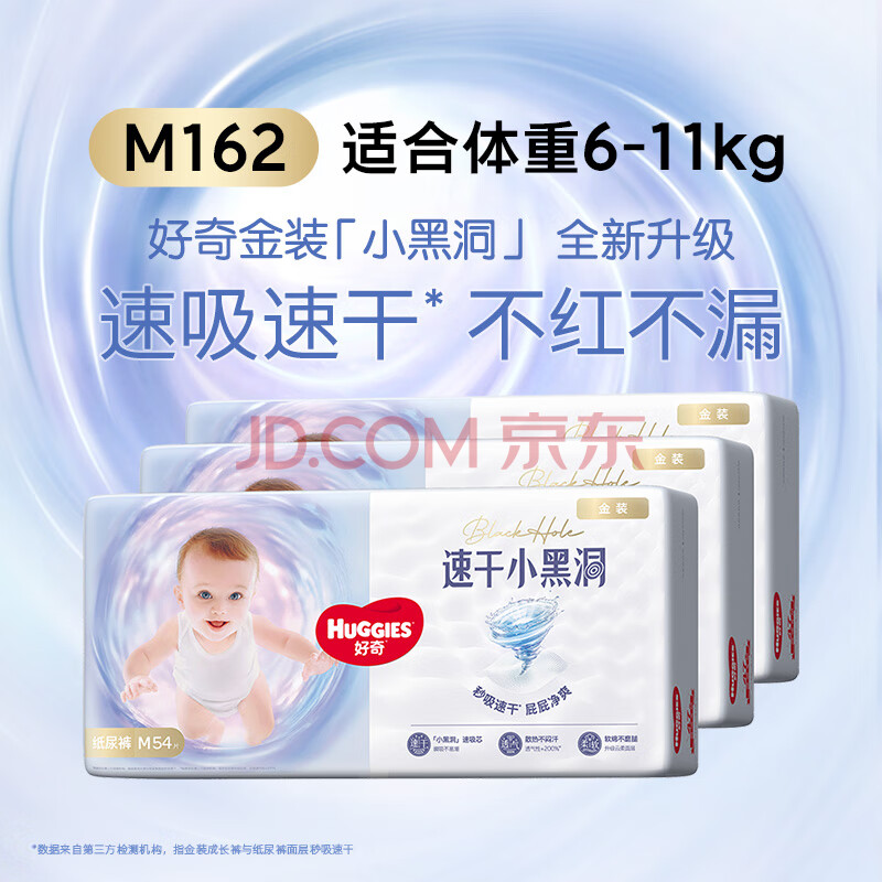 商品相册:好奇(Huggies)金装纸尿裤M162片(6-11kg)尿不湿【速干不易红】第1张/共6